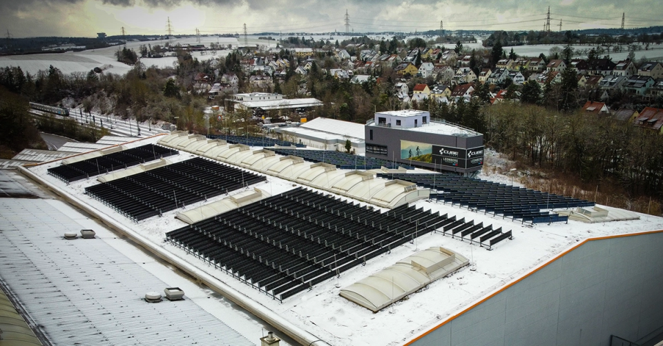 Viele gewerbliche Gebäude verfügen über große Flachdächer, oft mit Begrünung. Diese Dächer bieten ein enormes Potenzial für vertikale PV in Kombination mit dem Neigungswinkelbonus – stellen aber auch besondere Anforderungen: